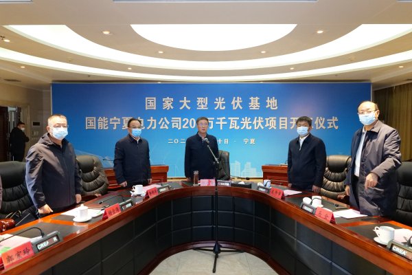 为落实习近平总书记重要讲话精神,按照自治区党委、政府工作部署,10月20日上午,自治区发展改革委采取线上方式,分自治区人民政府、宁东能源化工基地、国家能源集团总部三个会场,组织举办了国家大型光伏基地国能宁夏电力公司200万千瓦光伏项目开工仪式。自治区党委常委、常务副主席赵永清出席仪式并宣布项目开工,自治区副主席吴秀章,国家能源集团总经理刘国跃,自治区发展改革委主任李郁华,宁东管委会主任陶少华和自治区相关厅局、宁东管委会相关部门、国能宁夏电力公司代表在各会场出席开工仪式。